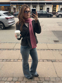 This classic knitted scarf features black and white stripes. The scarf is made in a soft and comfortable knit quality with a ribbed texture, providing both warmth and excellent comfort. The elongated design makes it easy to style around the neck and is perfect for both everyday wear and outerwear in the cooler months.