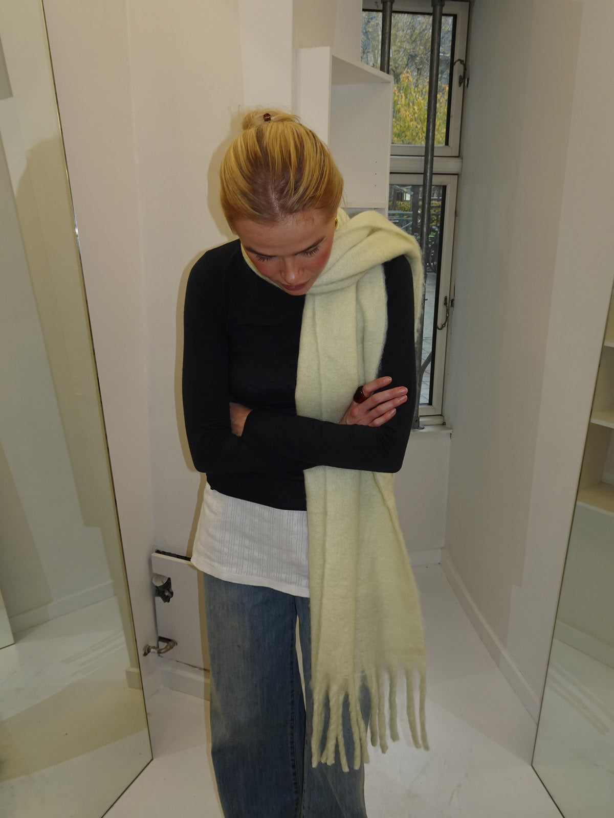 Our Gale scarf is the perfect combination of comfort and style. Made from a soft, lightweight, and warm material, it’s ideal for both everyday wear and chilly days. The simple design with delicate fringes at the ends gives it a classic and timeless look that suits any wardrobe.