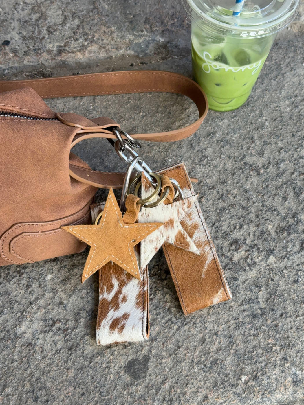 Vela is a stylish keychain crafted from genuine cowhide in light, spotted tones that create a unique and organic look. The soft fur and simple shape make it a charming accessory - perfect for your keys, bags, or as a thoughtful gift idea.
