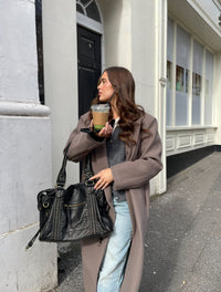 This bag is perfectly designed to fit a 13-inch laptop, making it ideal for studies or work. It comes with both a short handle and an adjustable long strap, allowing you to carry it as a crossbody or over your shoulder. The bag features elegant gold details and has a practical zipper pocket on the back. Inside, you'll find a small compartment and another zippered pocket for secure storage of valuables. The zipper closure ensures everything stays in place.
